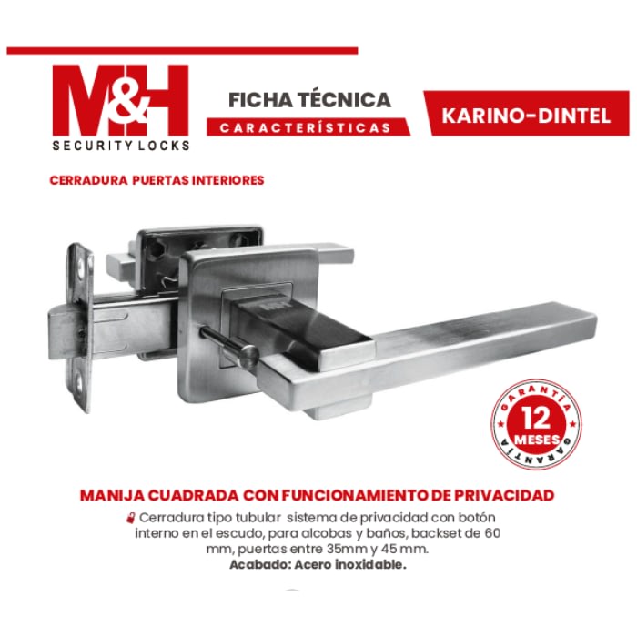 alcoba, con backset de 45mm, gancho en acero inoxidable, con 3 llaves.