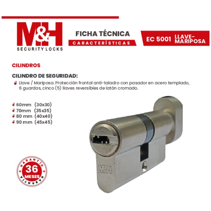 Cilindro Corriente: Llave / Mariposa 60 mm (30×30)