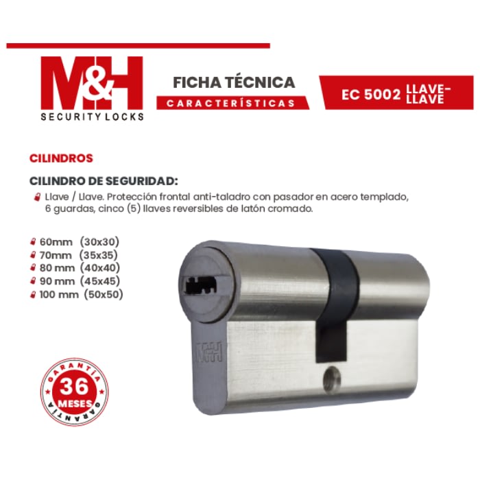 en acero templado, 6 guardas, cinco (5) llaves reversibles de latón cromado.