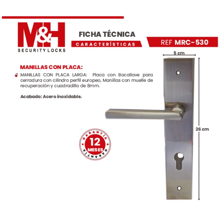 con bocallave para cerradura con cilindro de perfil europeo. Acabado: