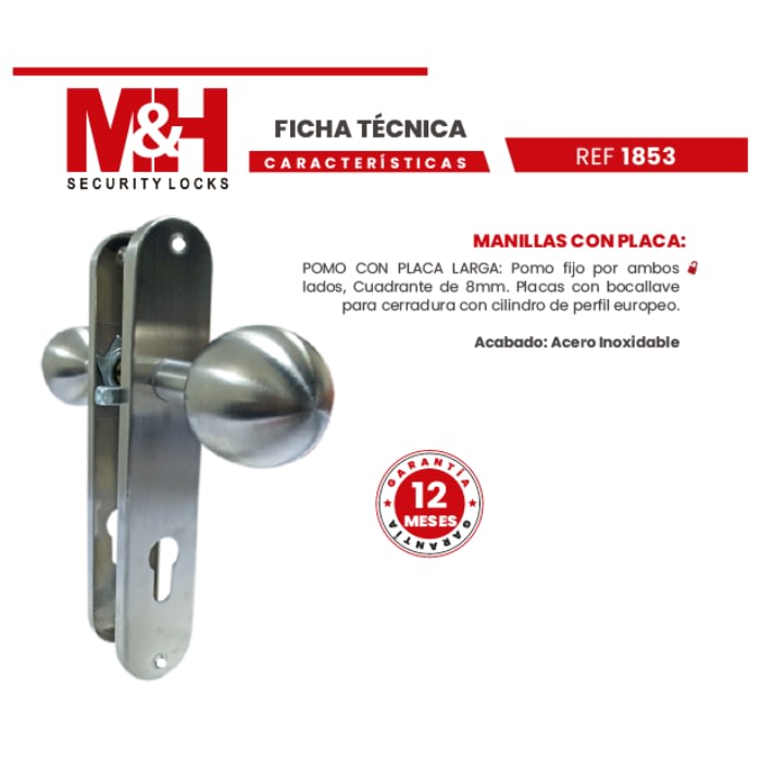 Pomo fijo por ambos lados, Cuadrante de 8mm. Placas