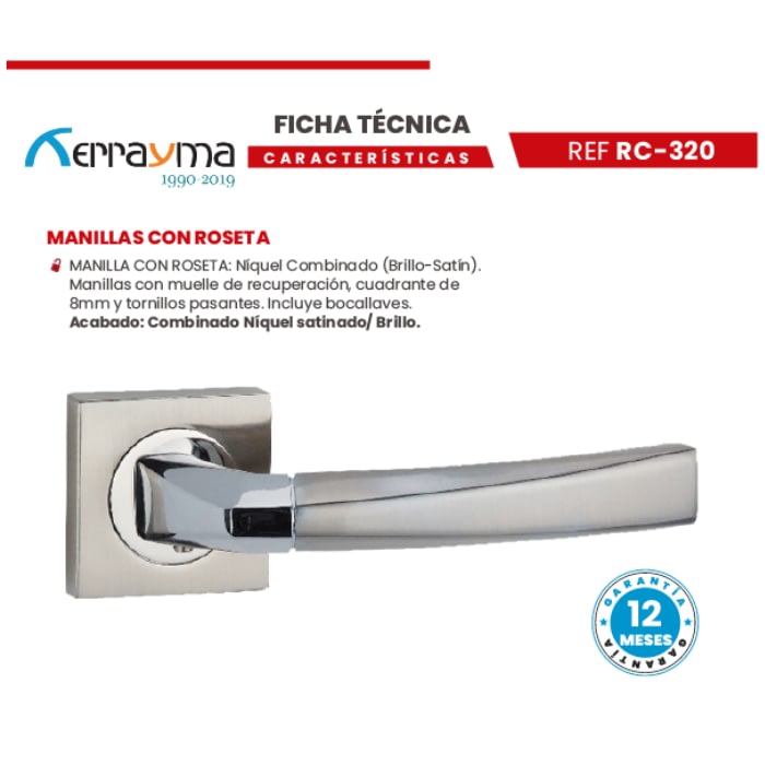 Níquel Combinado (Brillo-Satín). Manillas con muelle de