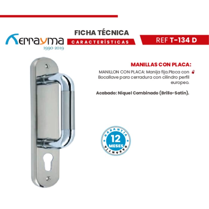 Manija fija.Placa con Bocallave para cerradura con cilindro