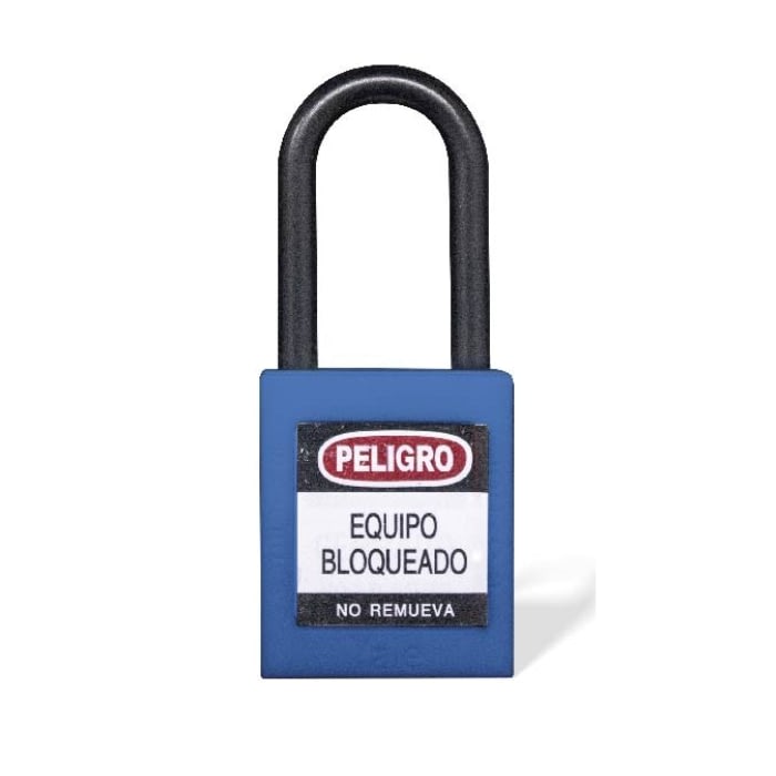Candado de 38mm gancho de nylon dieléctrico indicado para zonas y máquinas de uso eléctrico. Durable cuerpo de poliamida no conductor que asegura una difícil deformación o fractura. Resistente a químicos, temperaturas extremas de -57ºC a + 177ºC, golpes y rayos UV. La función de retención de llave garantiza que el candado quede asegurado. Diferentes opciones de colores que permiten personalizar el programa de bloqueo y etiquetado según las necesidades. Disponible en color amarillo, rojo, azul y verde. Contiene etiqueta «PELIGRO» y «PROPIEDAD DE» en la parte delantera y trasera para mayor identificación.