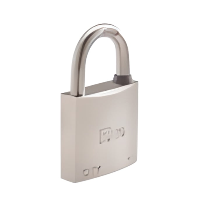 candado marino ideal para intemperie con cuerpo en latón niquelado con caucho protector en la argolla.