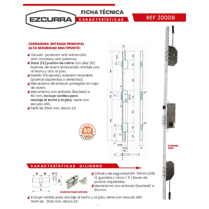 niqueladas. Mecanismo con entrada (Backset) a 60 mm,