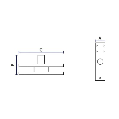 –Fabricado en platinas con medidas (según esquema): A = 38 mm B = 45 mm y C = 100 mm